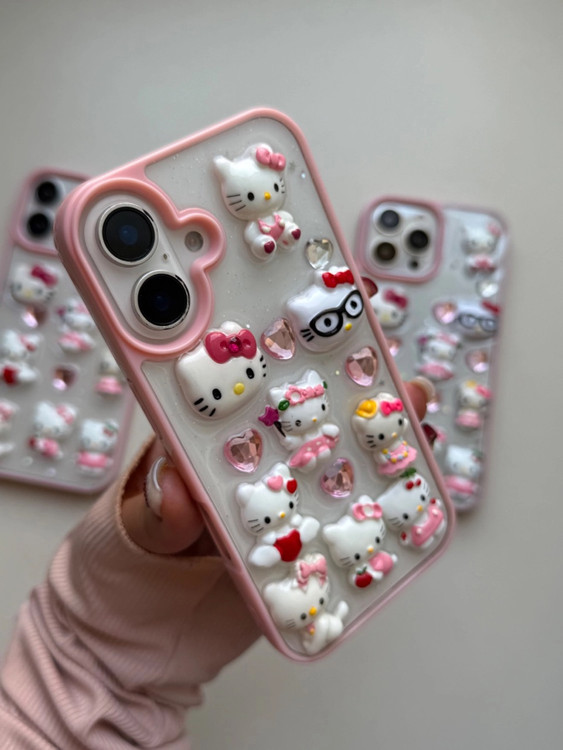 قاب گوشی آیفون کیتی صورتی شفاف